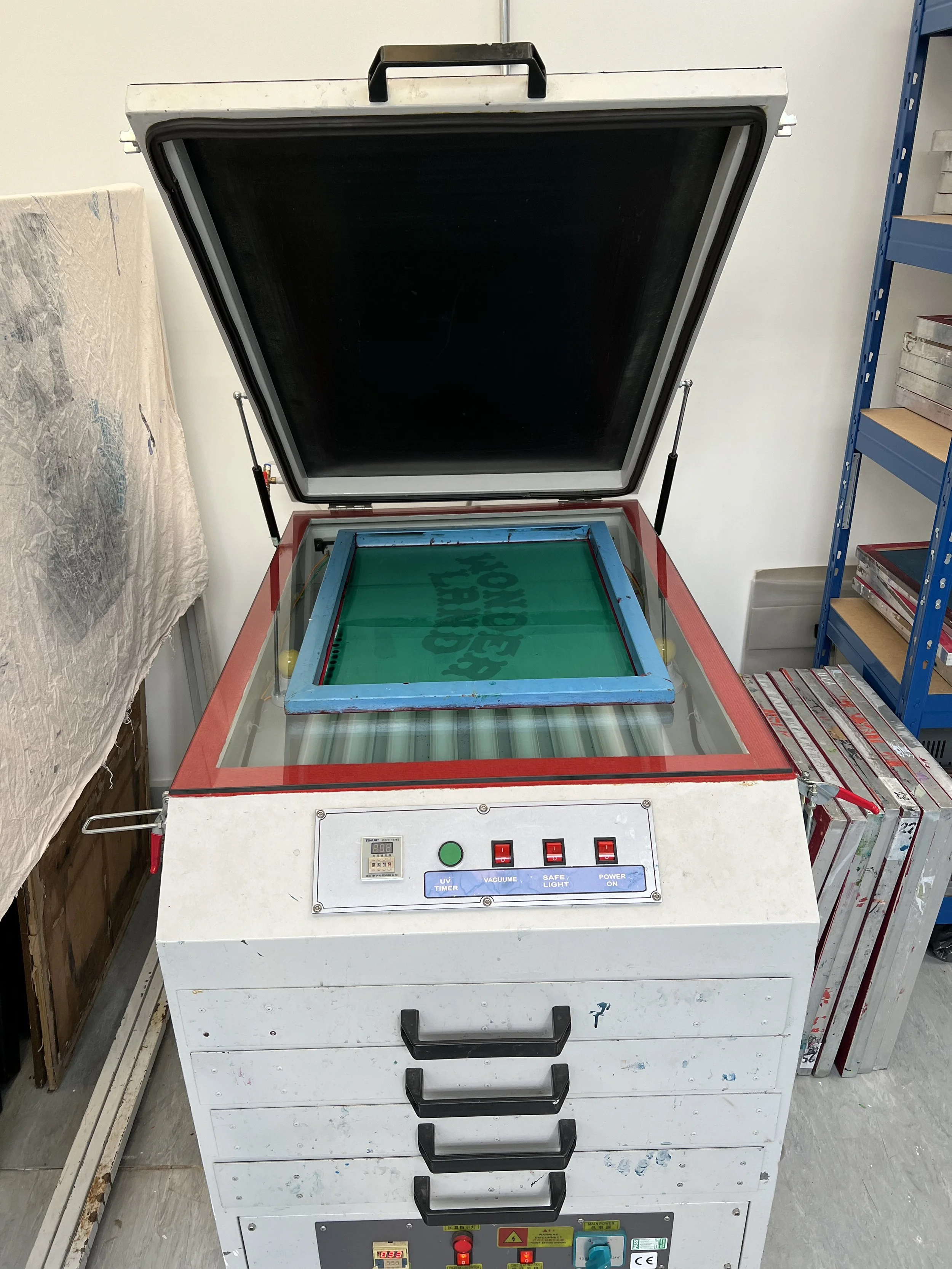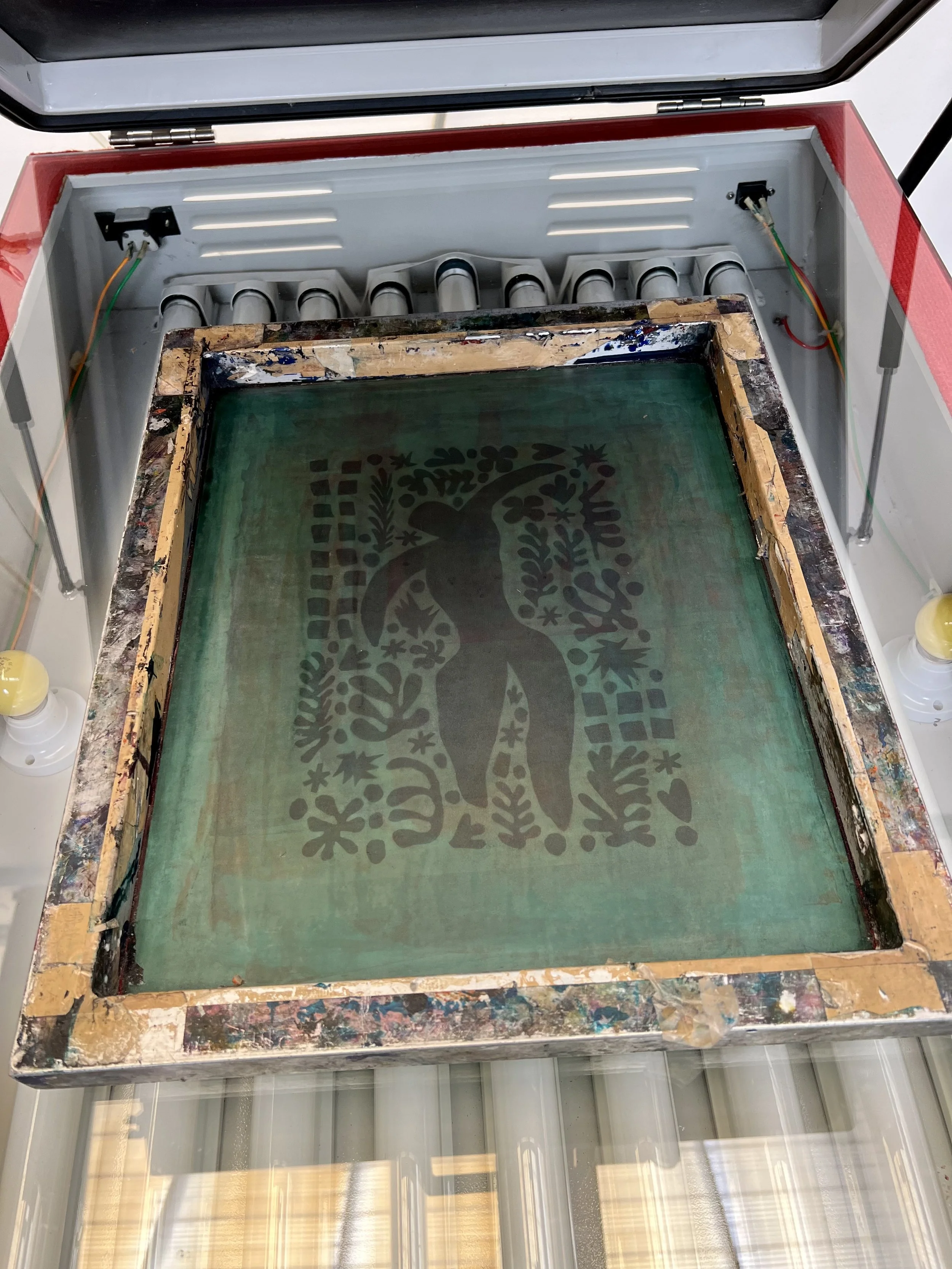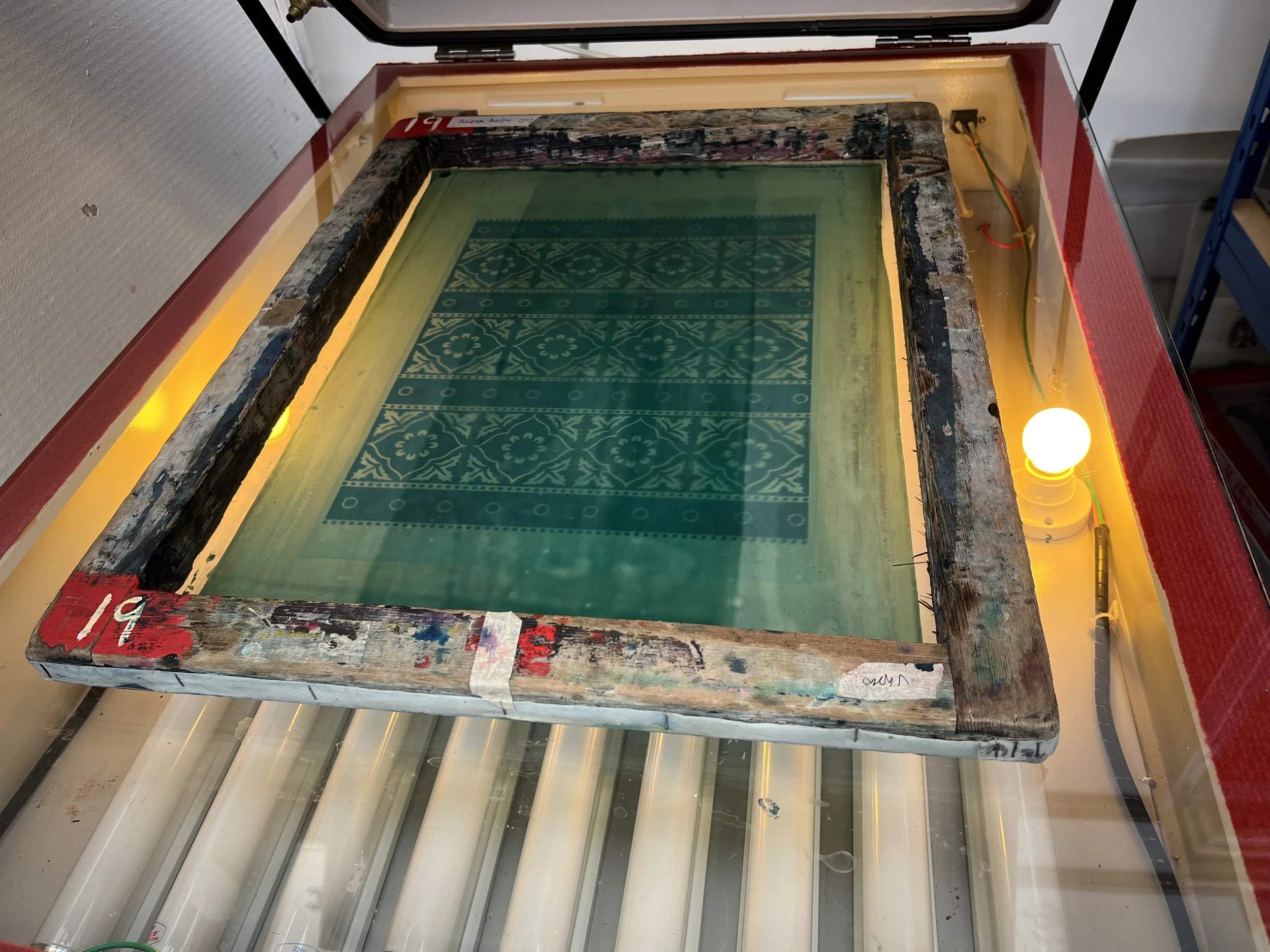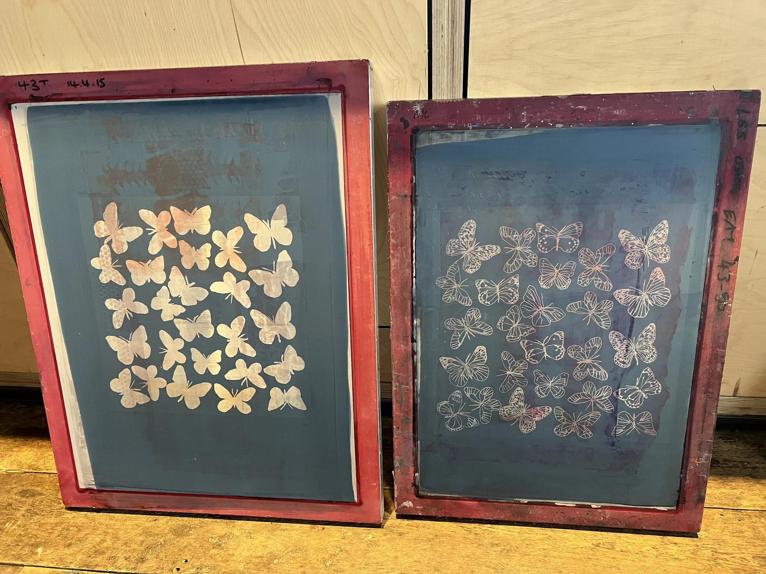 Exposing a silk screen allows you to print multiple designs onto a surface, such a books, t-shirts and lengths of material. If you would like your design exposed onto a screen in one of my workshops, please get in touch x3 weeks before the workshop date to discuss your design ideas.