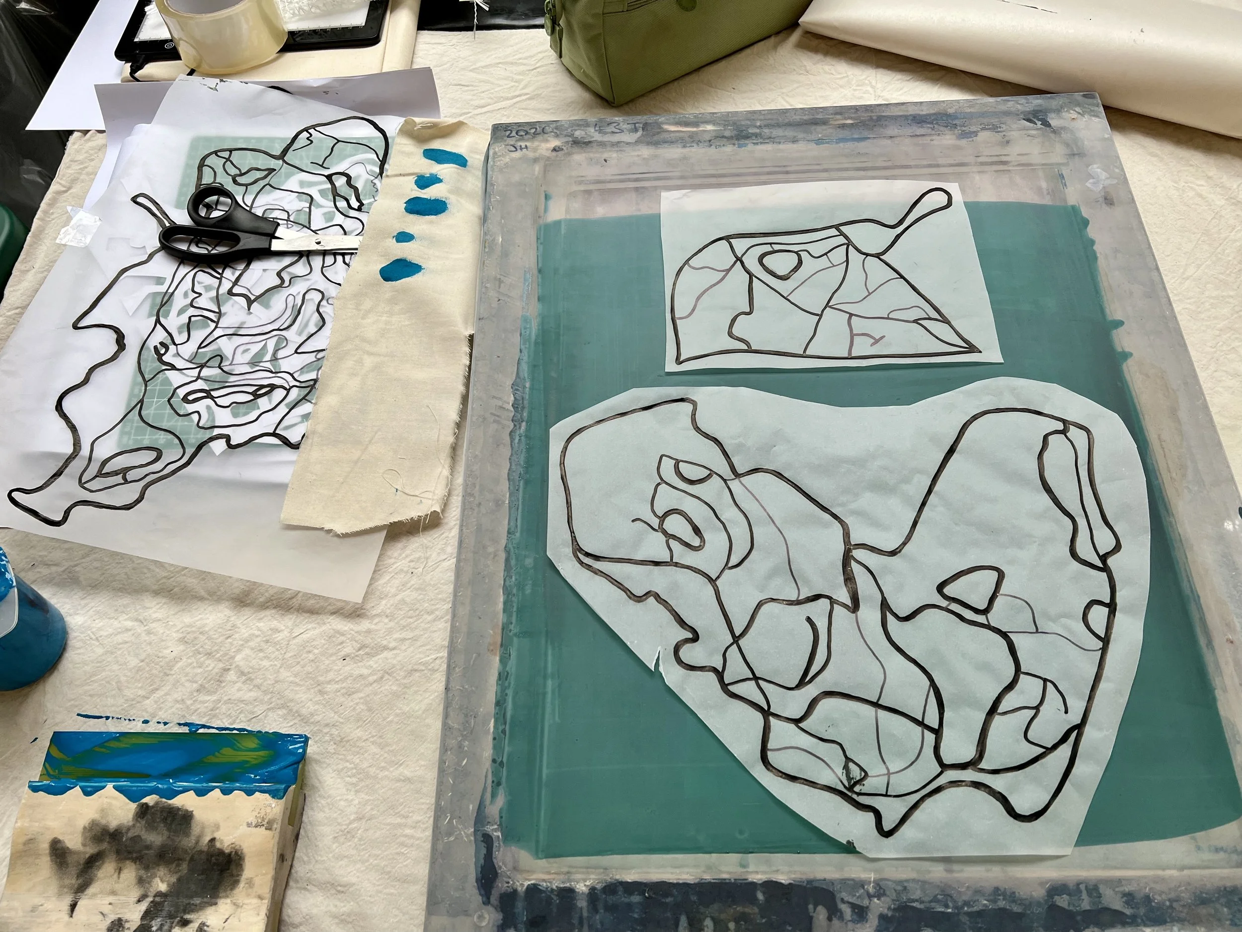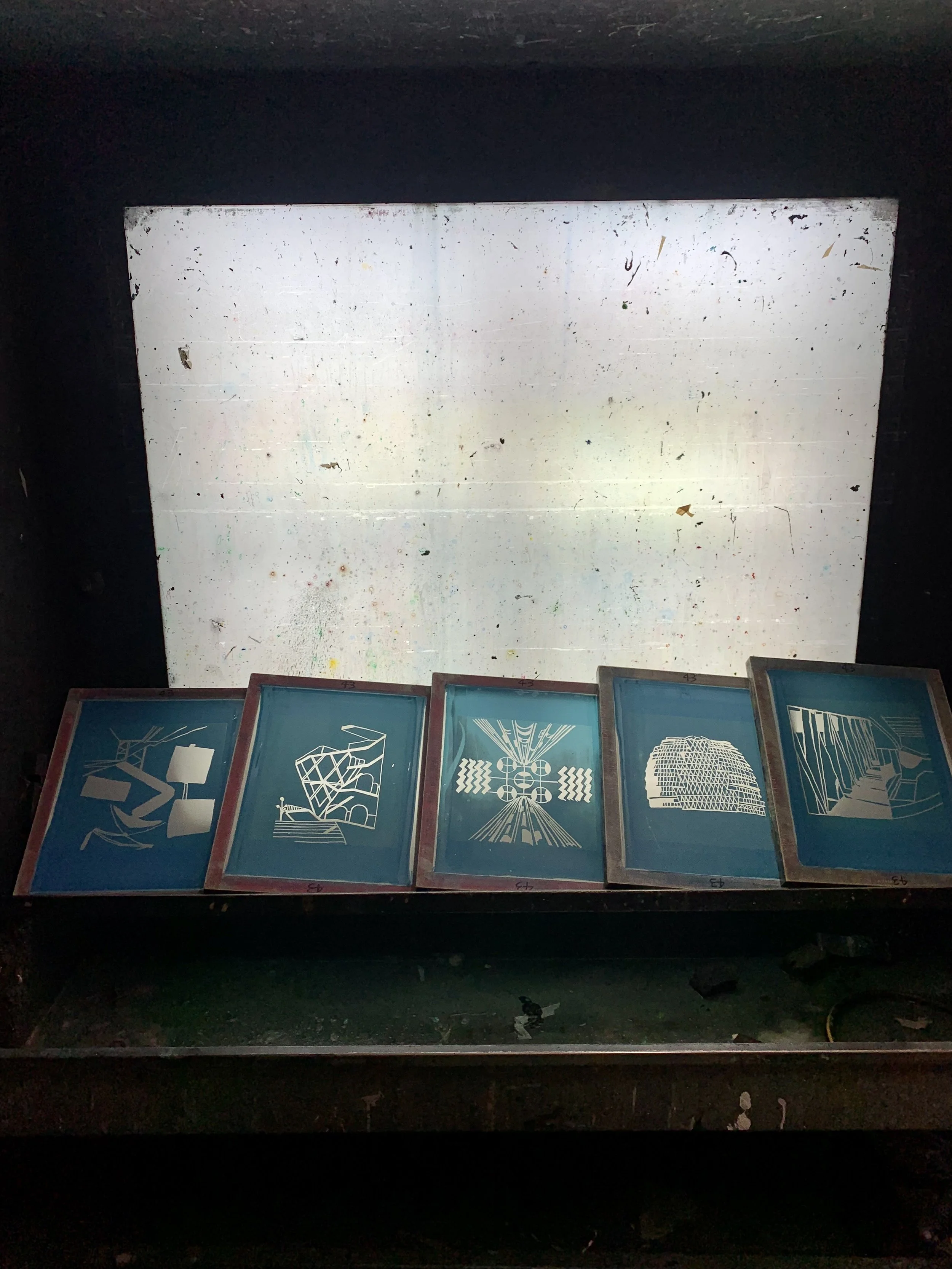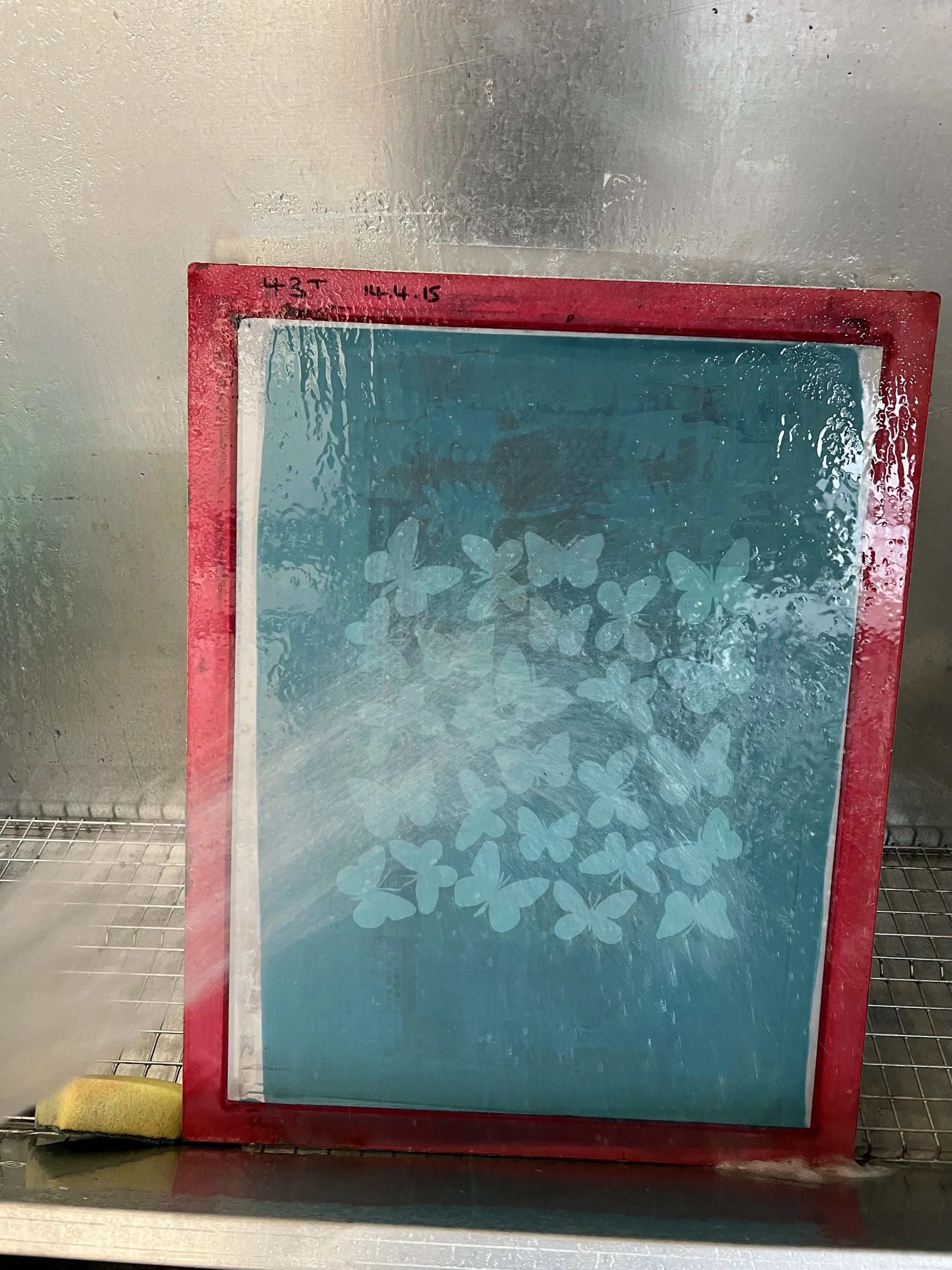 Exposing a silk screen allows you to print multiple designs onto a surface, such a books, t-shirts and lengths of material. If you would like your design exposed onto a screen in one of my workshops, please get in touch x3 weeks before the workshop date to discuss your design ideas.