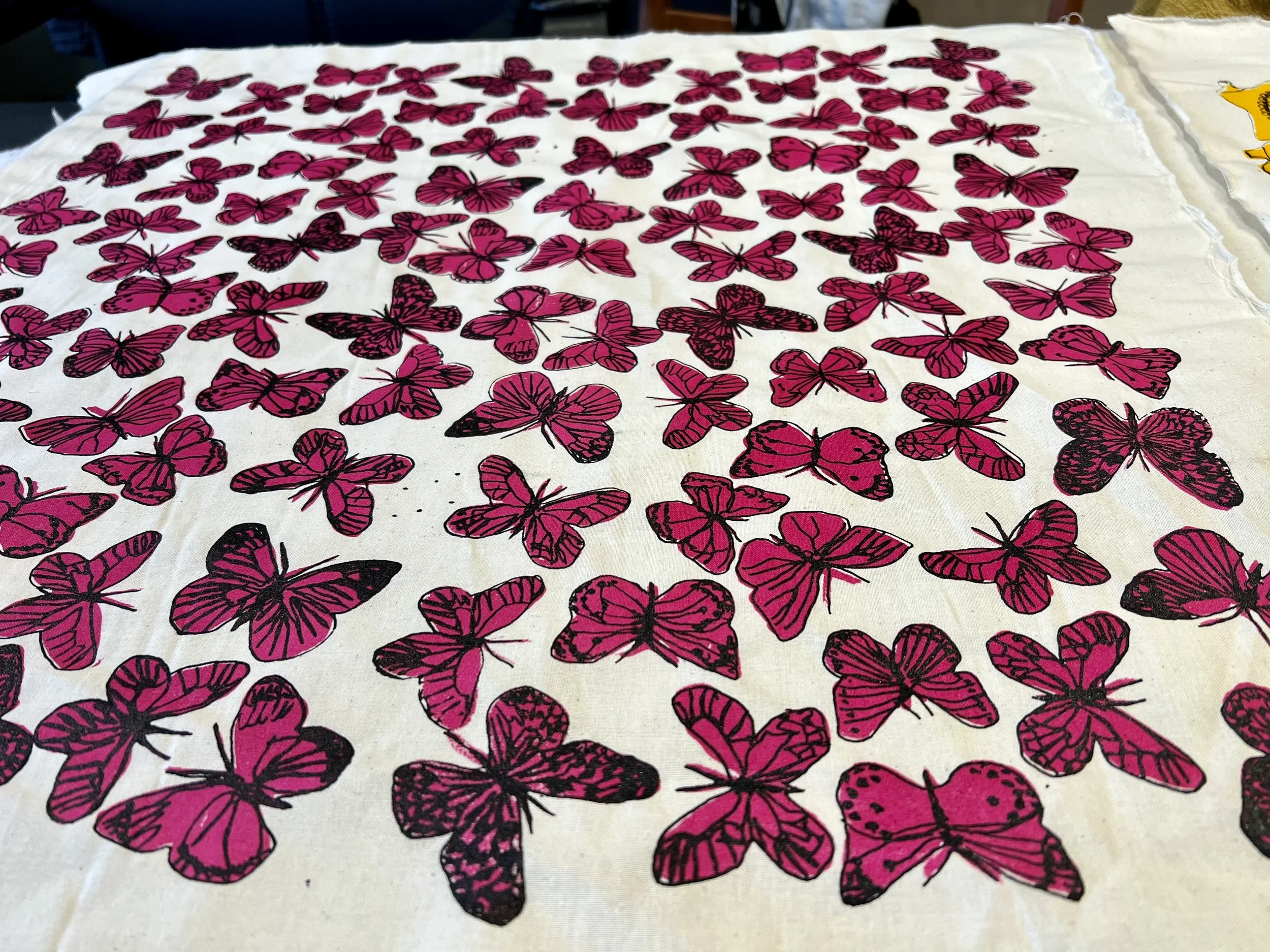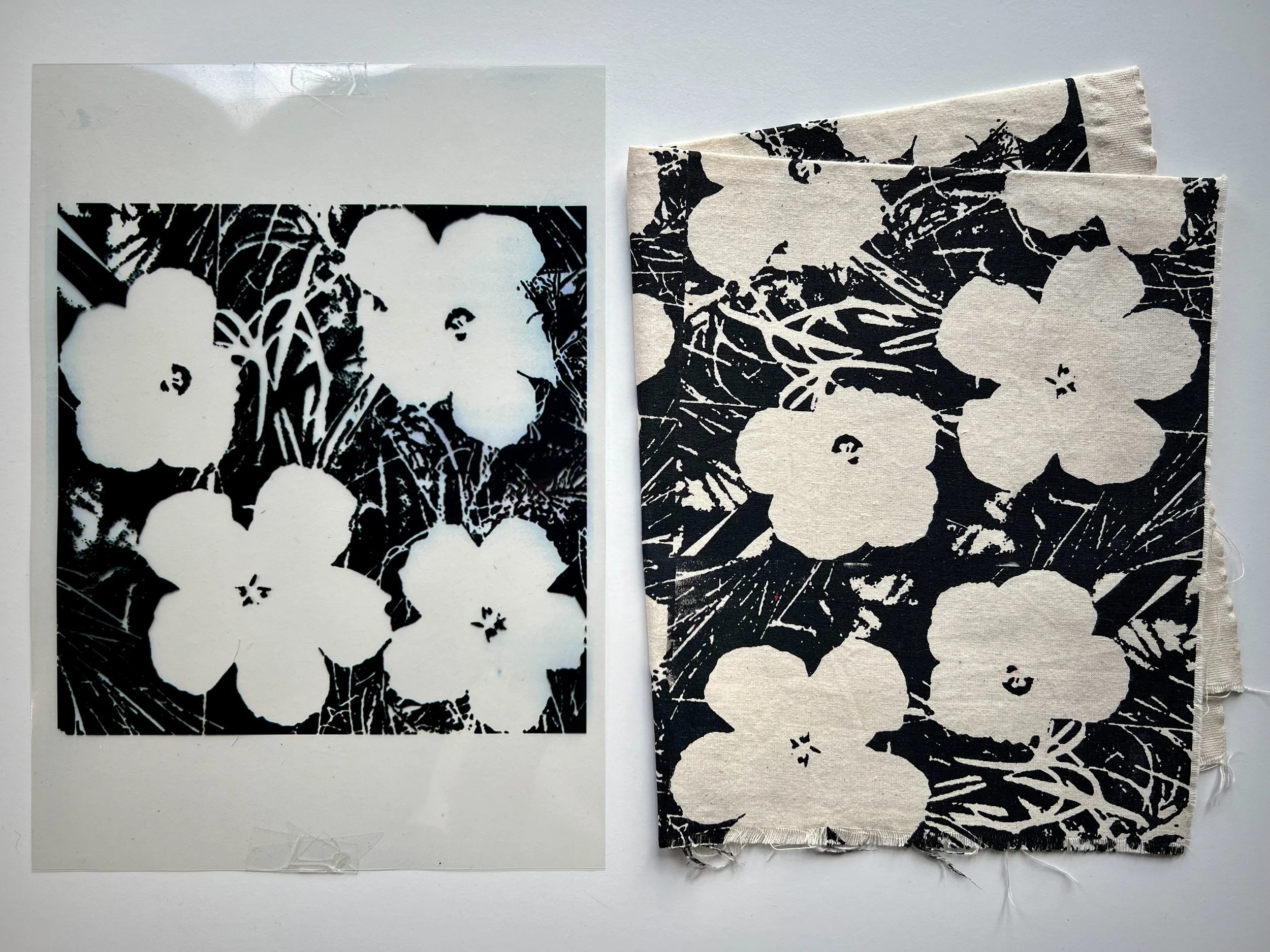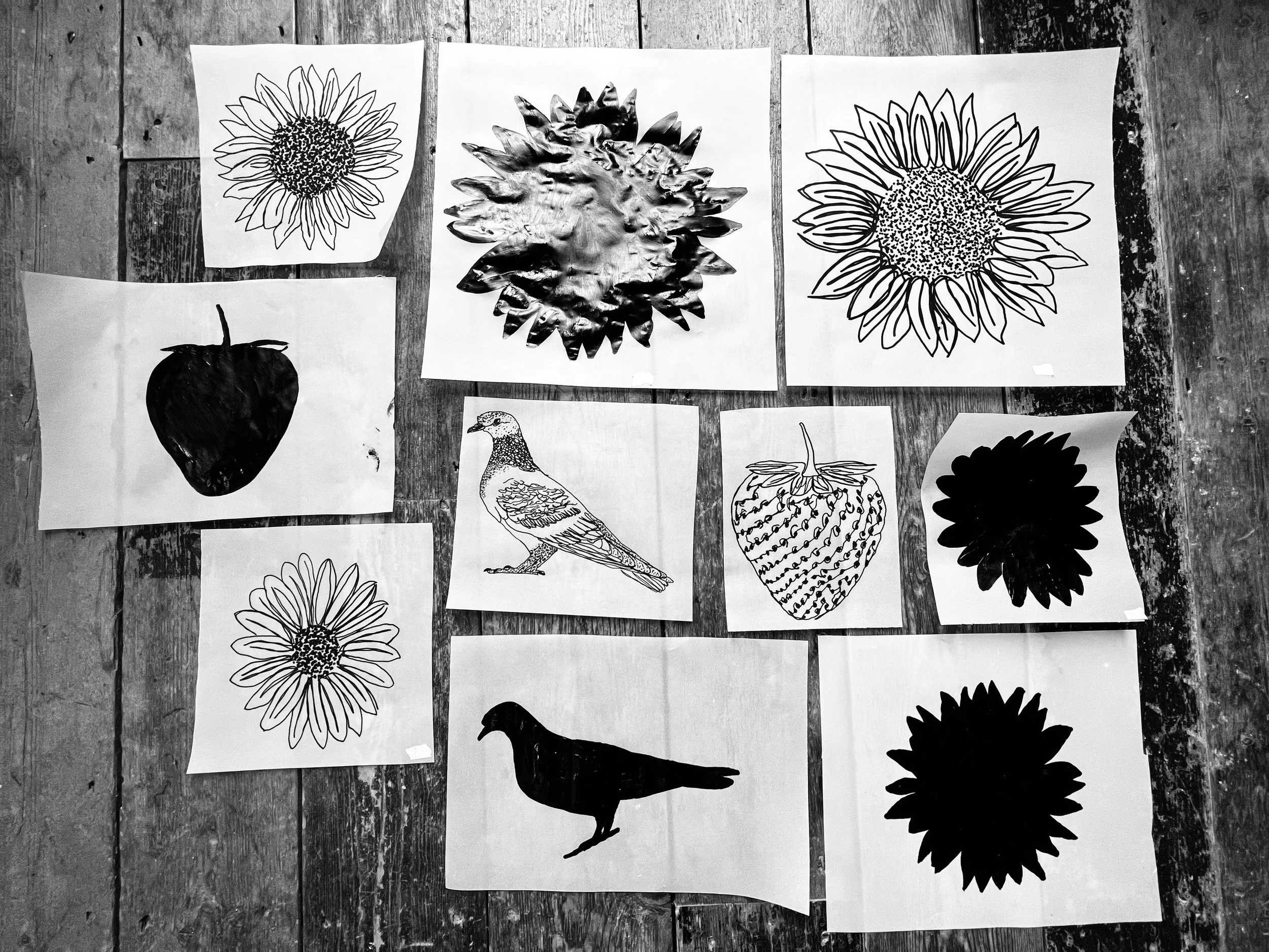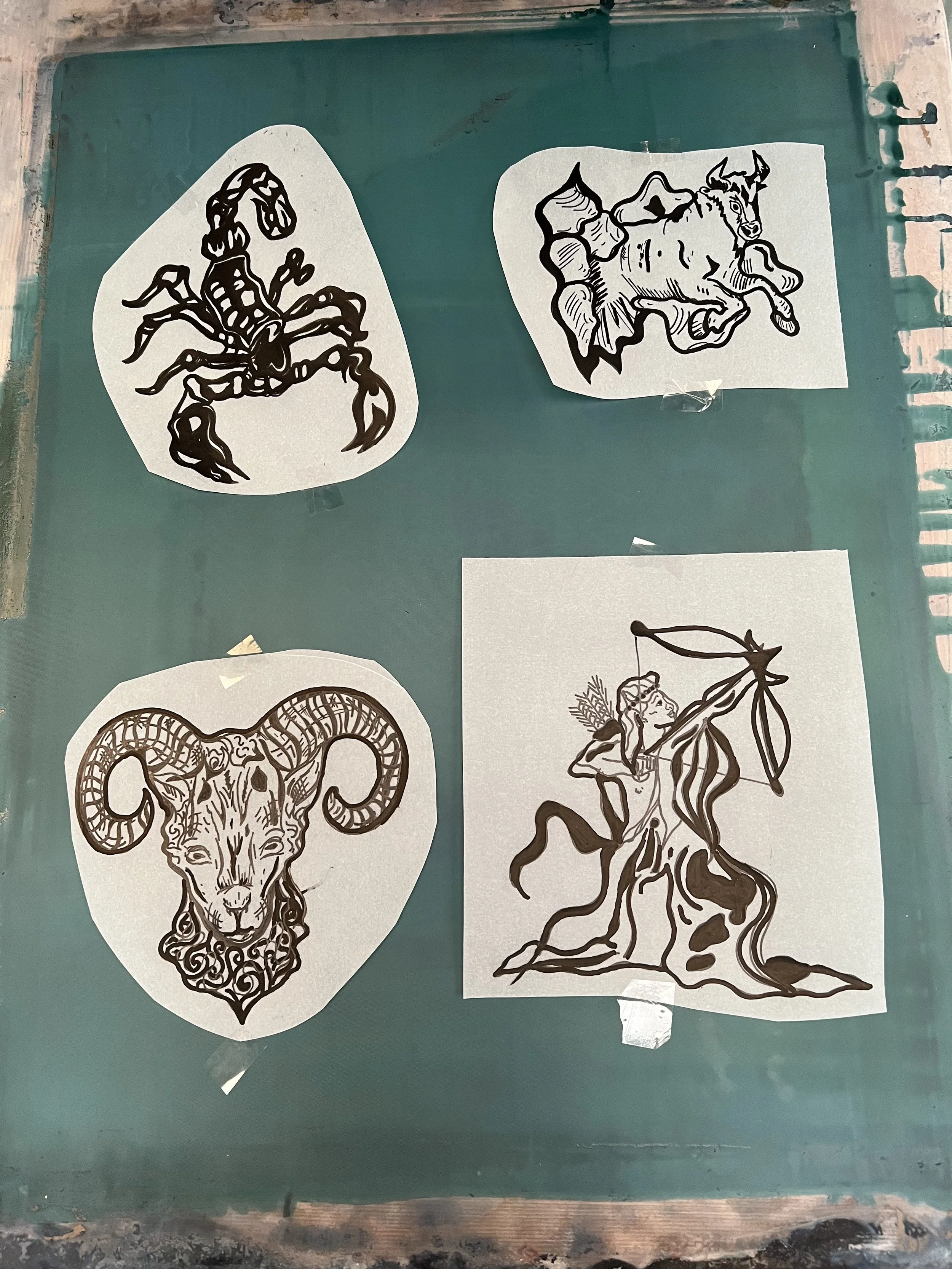 Exposing a silk screen allows you to print multiple designs onto a surface, such a books, t-shirts and lengths of material. If you would like your design exposed onto a screen in one of my workshops, please get in touch x3 weeks before the workshop date to discuss your design ideas.